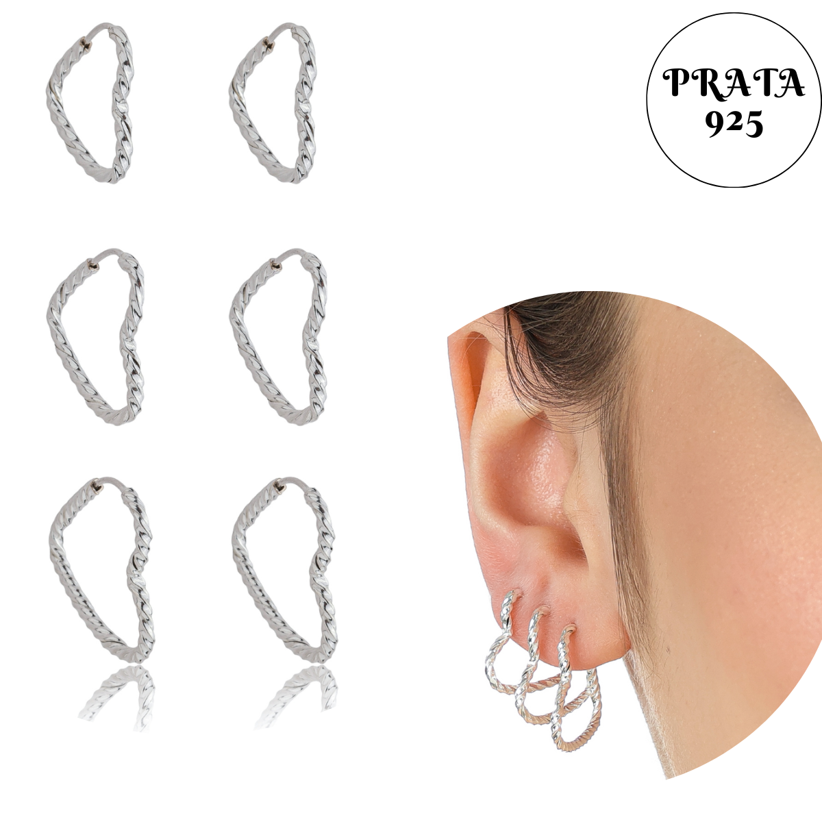 TRIO ARGOLAS DE PRATA LEGÍTIMA (NÃO É FOLHEADO)